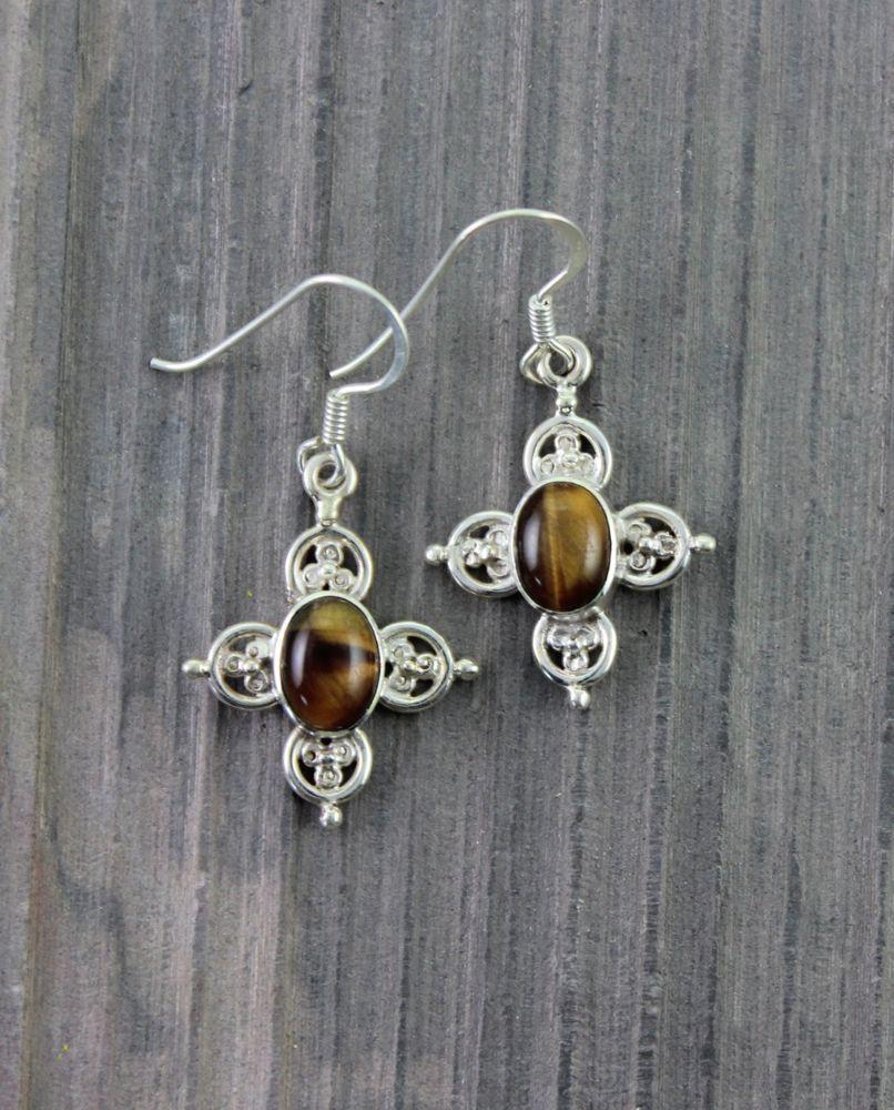 These 1 inch tall sterling silver earrings were handmade in Nepal with a tiger eye stone in the center. Beautiful and delicate details.
