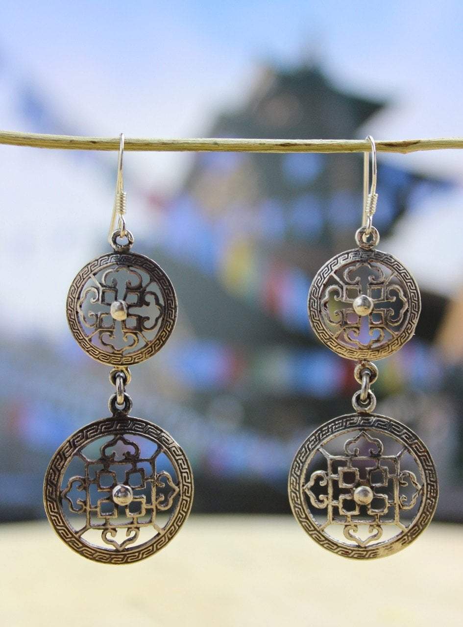 Silver sterling earrings made by the Tibetan artisans in Katmandu Valley. Sterling silver french hooks.