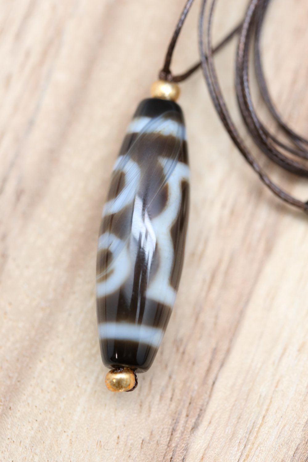 Necklace length is adjustable. Dzi bead measures approximately 1 1/2 inch long and 1/2 inch wide.
