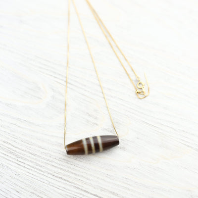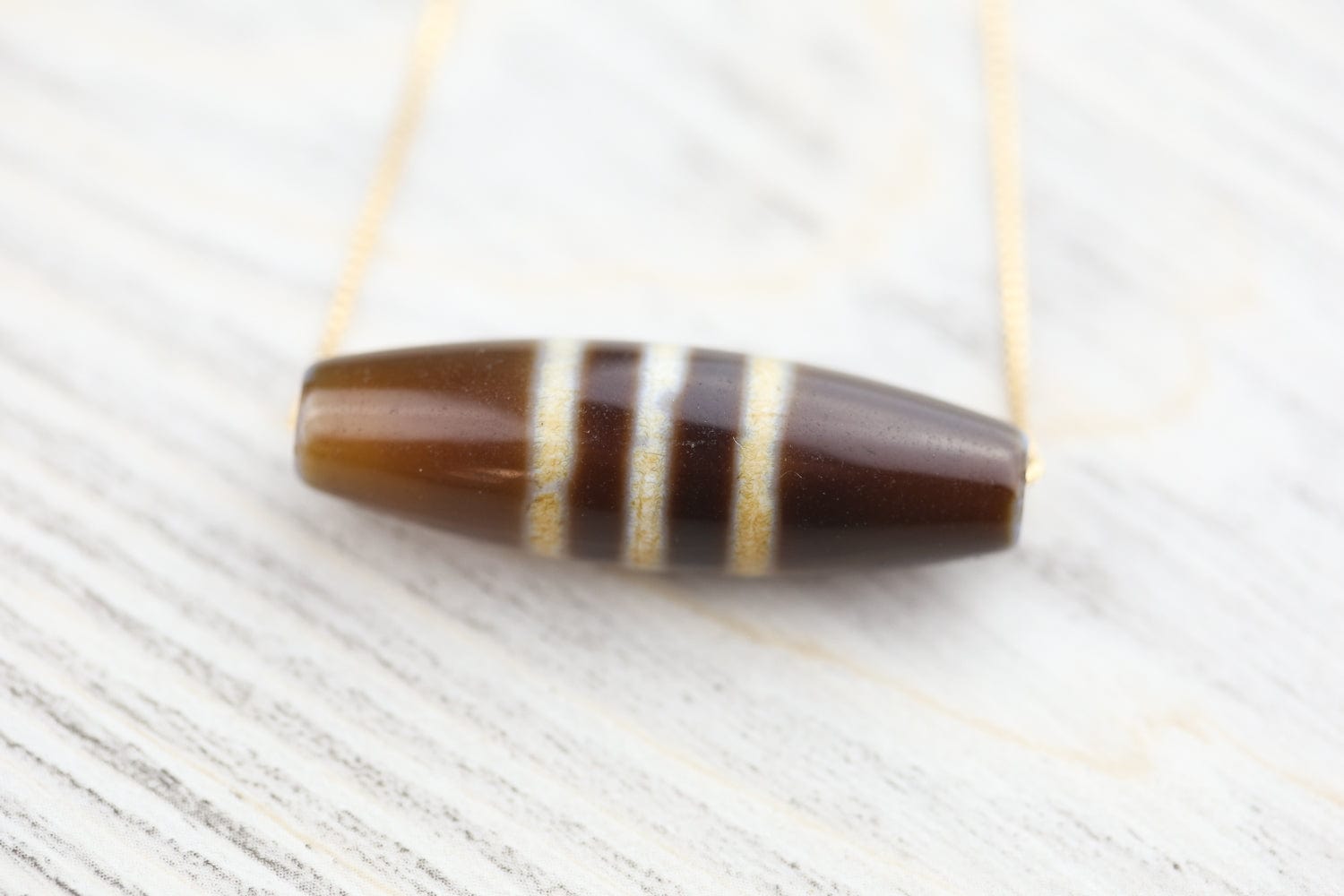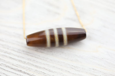 Dzi beads are believed to offer protection and prosperity to the wearer. The Three-Striped design represents multiple fortunes to be gained by the owner. If powered by love of ones self, this bead can offer a great journey.