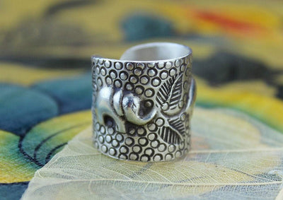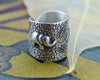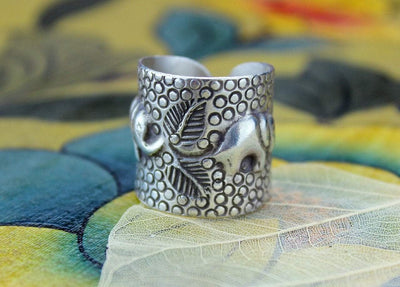 Stamped lotus design in sterling silver. Sized ring. Quantities limited.