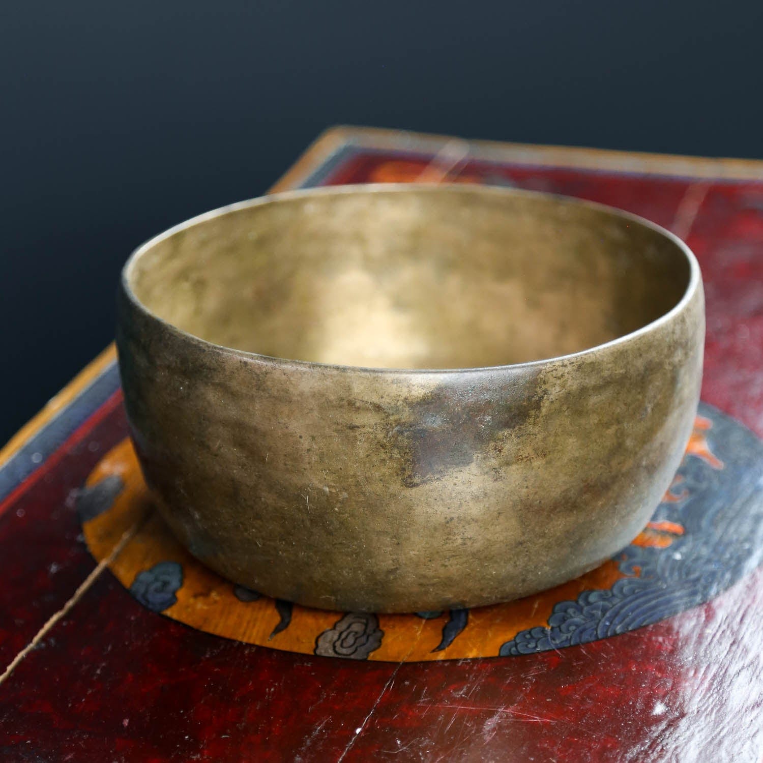 Each time we're able to get a small collection of these bowls is exciting as they are exceptional. Antique Tibetan singing bowls like this one are highly sought after for their remarkable quality sound, rich tones, and unique physical characteristics. Every handmade mark tells a story of the bowls history!
