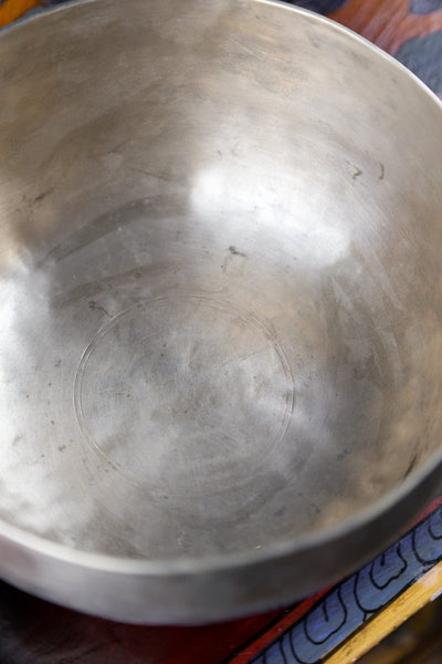 Each time we're able to get a small collection of these bowls is exciting as they are exceptional.  Antique Tibetan singing bowls like this one are highly sought after for their remarkable quality sound, rich tones, and unique physical characteristics.  Every handmade mark tells a story of the bowls history!