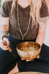 The Phurba is a triple-sided Tibetan ritual dagger or stake. It is traditionally used during ceremonies and can be staked into the ground prior to rituals to tether negative energy. The Phurba is also powerful symbol of the Buddha's enlightened activity, or karma. It is said to be able to pierce through the three poisons of ignorance, attachment, and aversion which blesses and protects the practicioner.