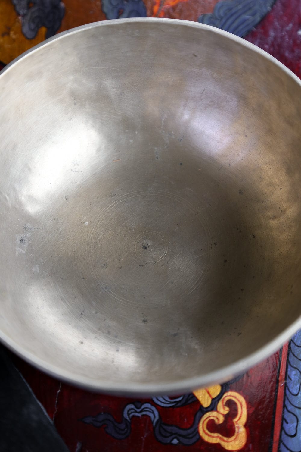 Each time we're able to get a small collection of these bowls is exciting as they are exceptional.  Antique Tibetan singing bowls like this one are highly sought after for their remarkable quality sound, rich tones, and unique physical characteristics.  Every handmade mark tells a story of the bowls history!