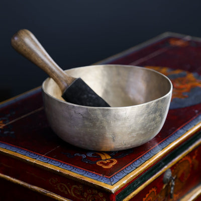 • The bowl was hand selected by the DharmaShop team in Nepal from a stunning and superior collection of antique bowls for their amazing quality of sound.