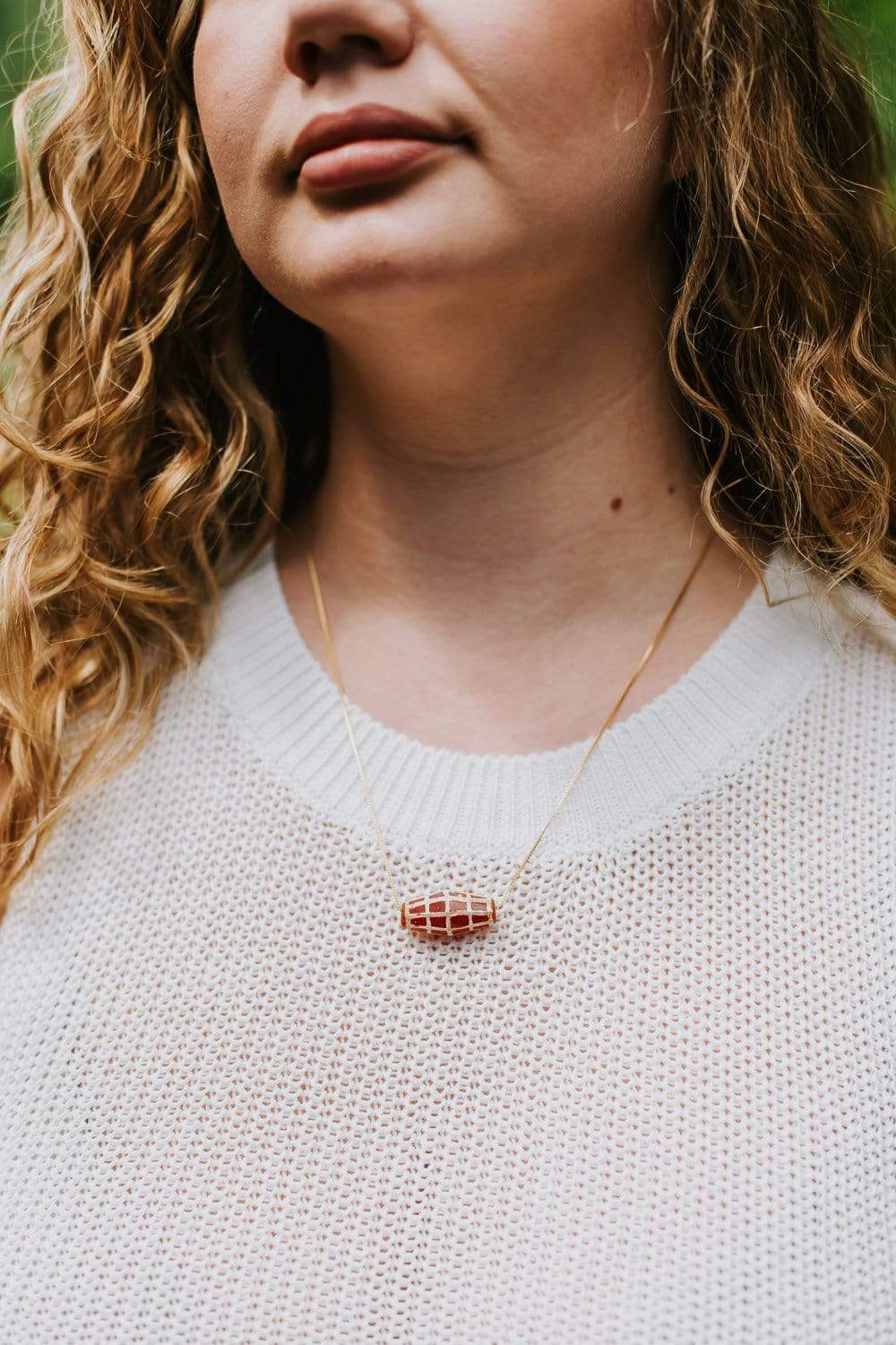 Necklace measures approximately 22 inches around and can be tightened as desired. Carnelian beads are about 1.1-1.25 inches.