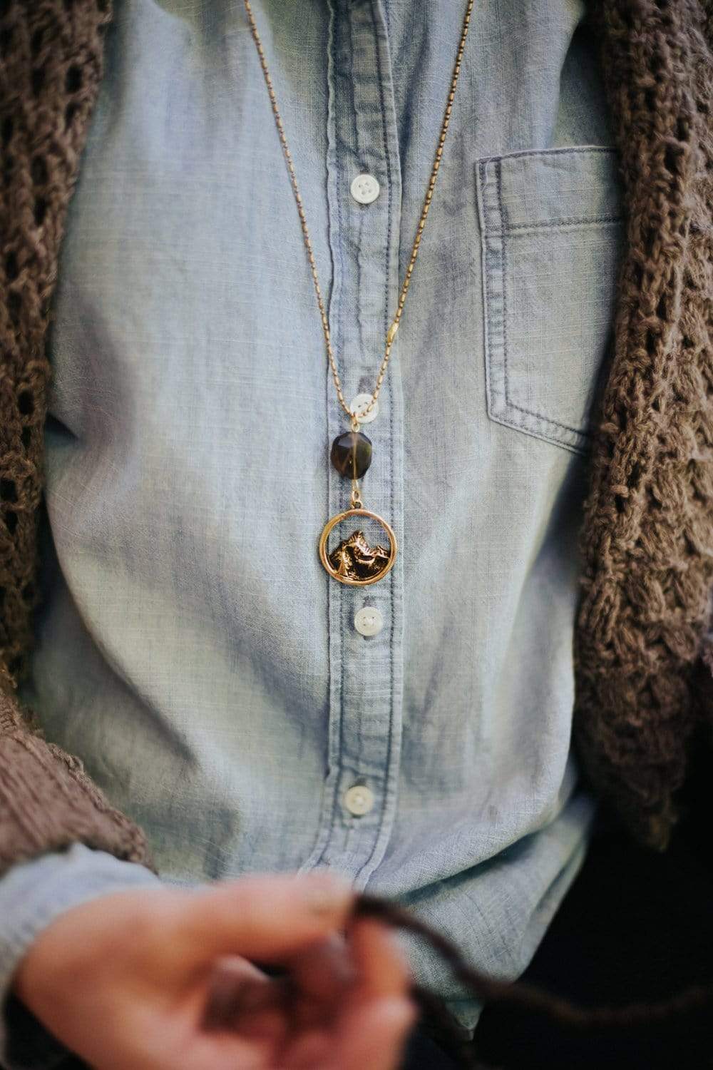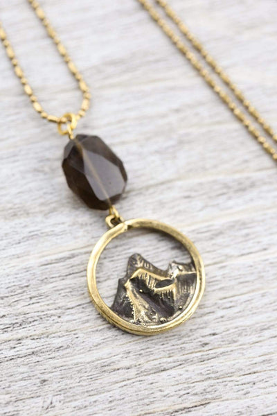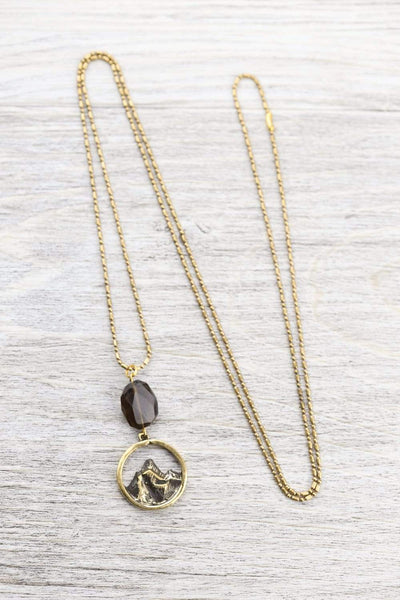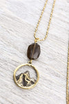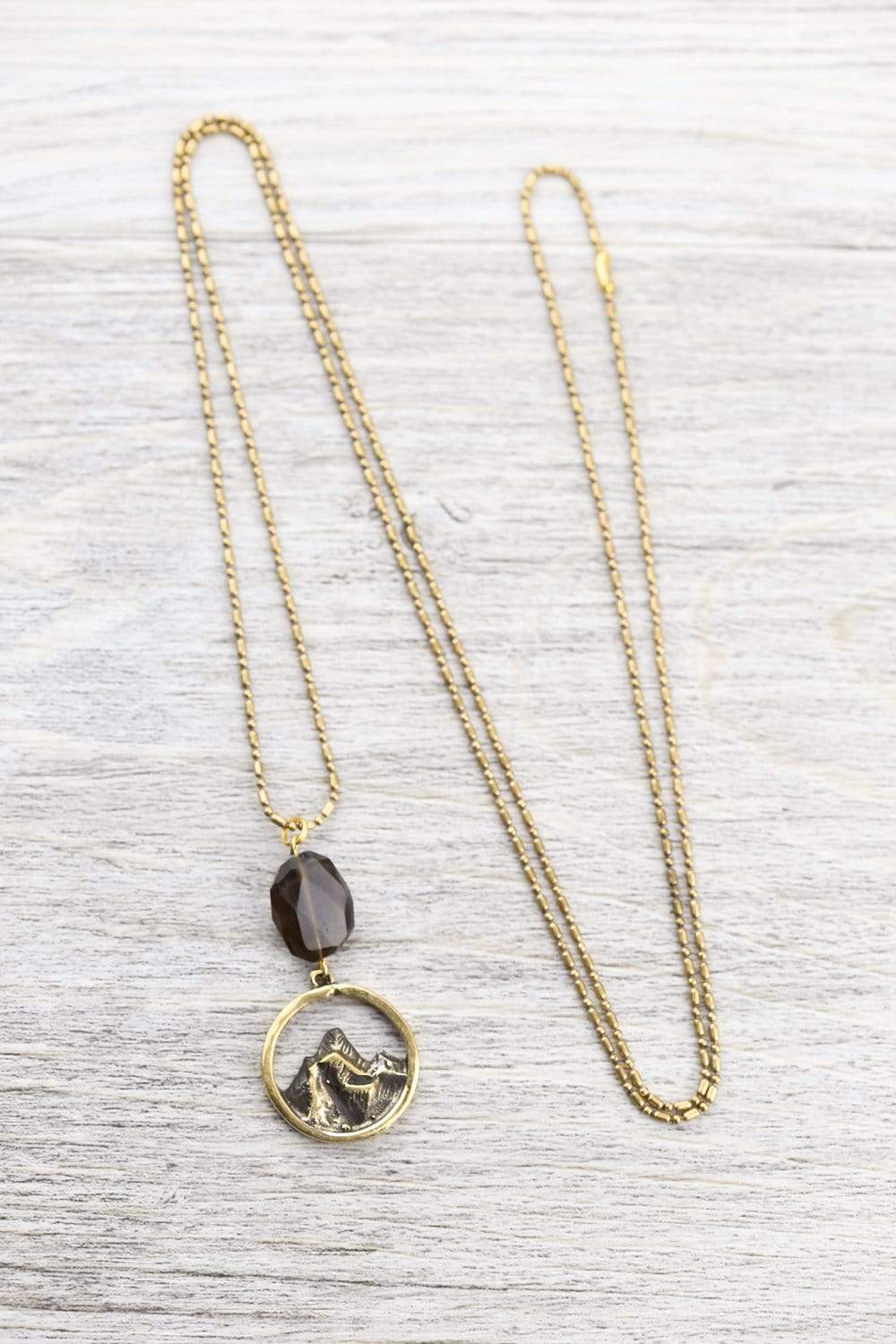 Necklace measures approximately 39 inches around. Smoky quartz piece is about 0.75 inch and the Everest pendant is about 1.25 inches.