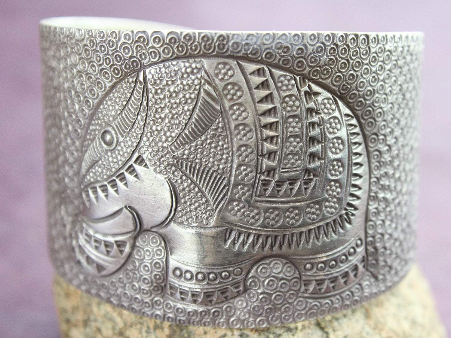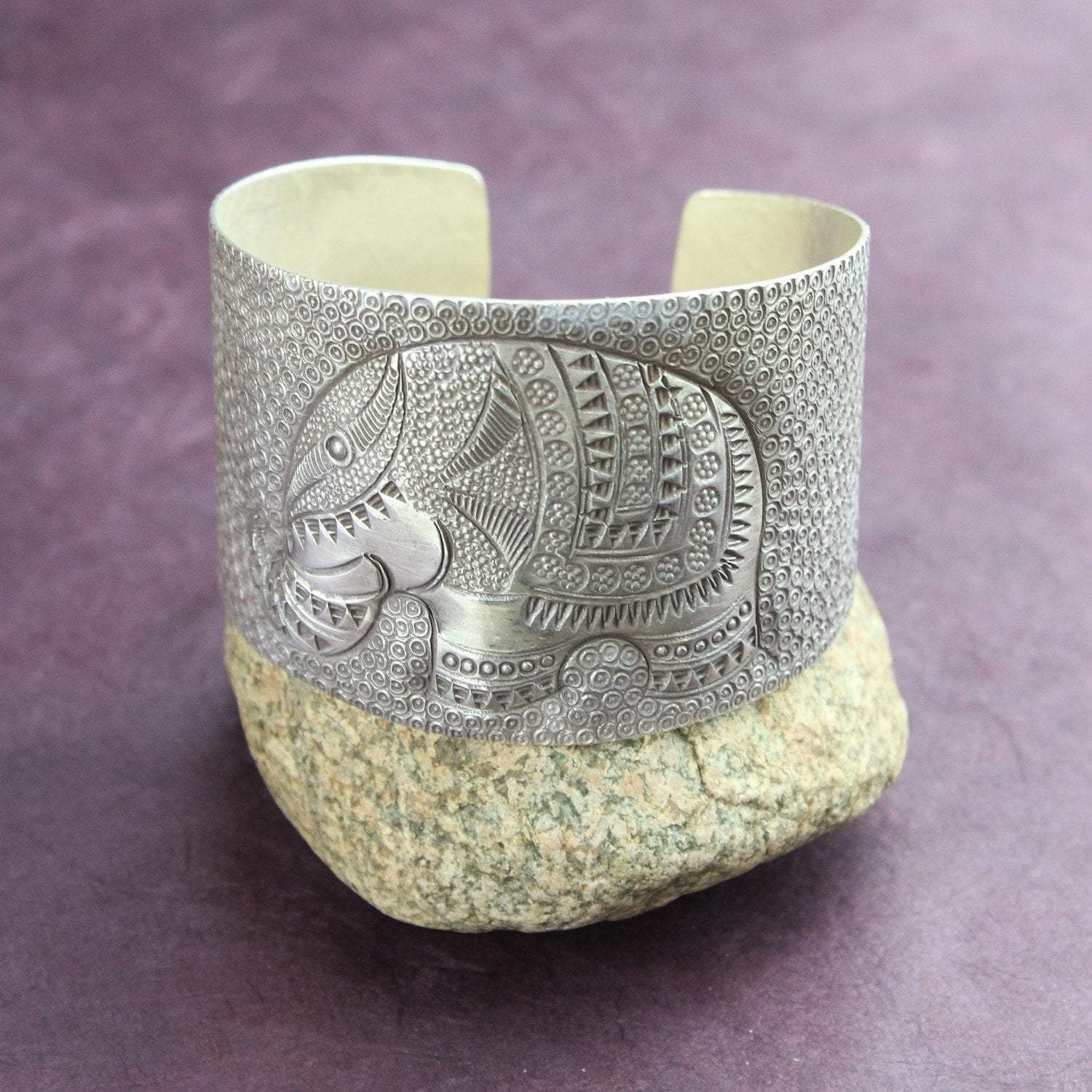 This exquisite elephant cuff bracelet is sure to impress! Made with .98 Hill Tribe silver, it features absolutely gorgeous hand stamped details on every inch.