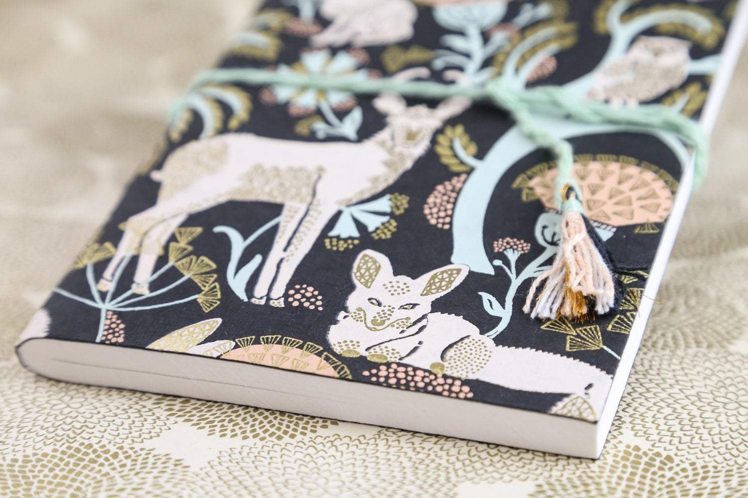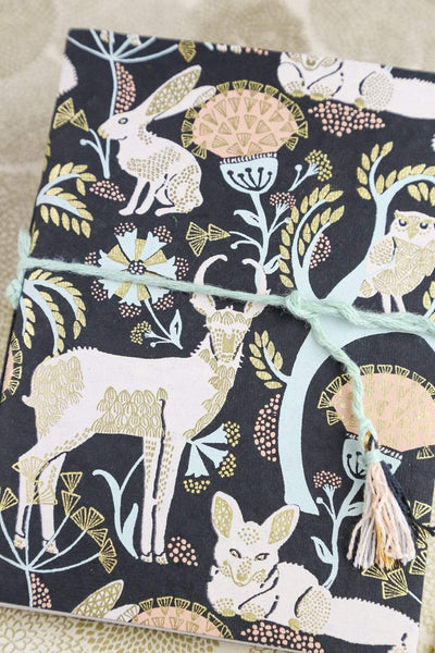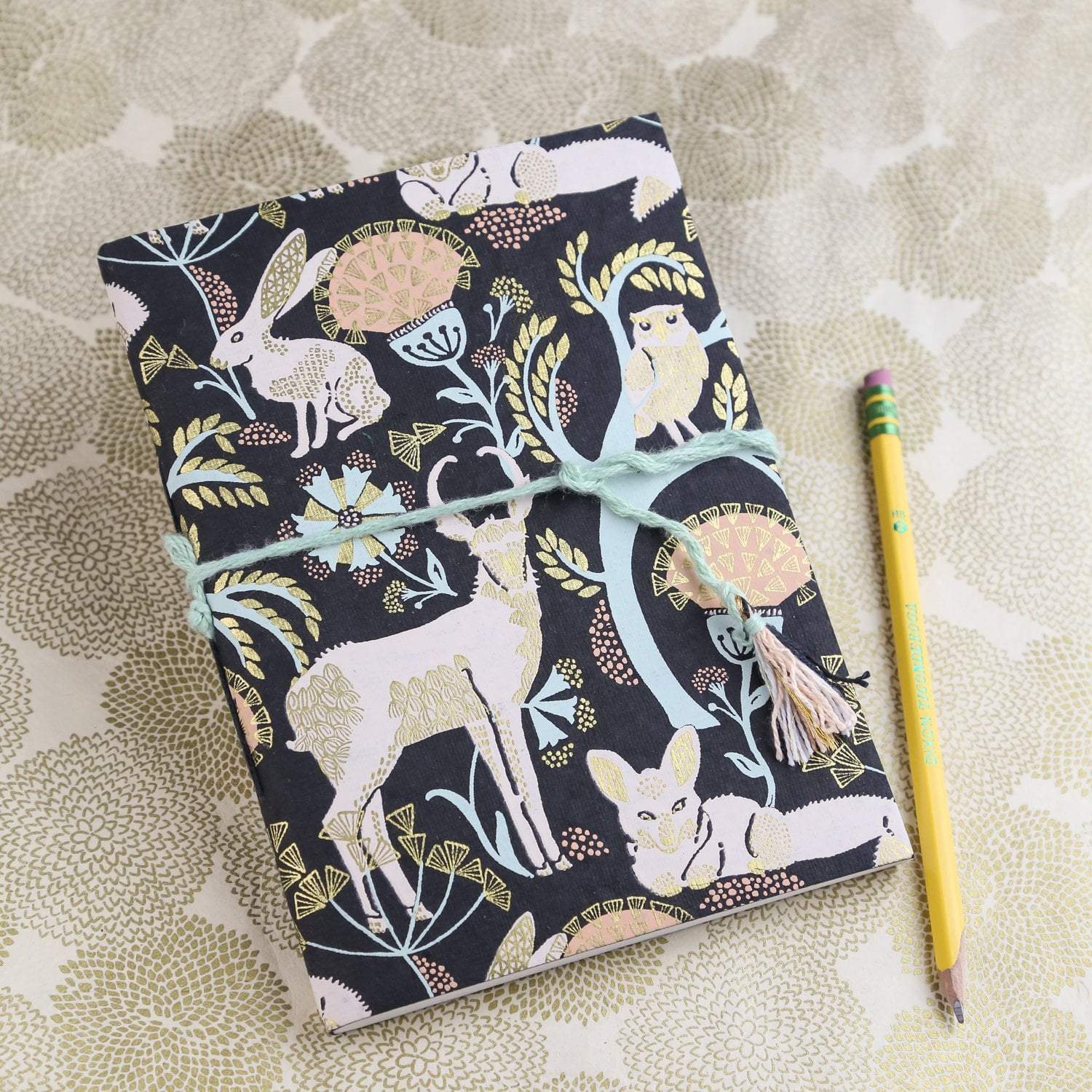 This tree-free and fair trade journal is absolutely beautiful. It features a fauna inspired design with a woodland scene. The 100% recycled cotton paper is made by artisans in Rajasthan, India, following a generations-old process. The journal is entirely handmade, sustainable, and eco-friendly.