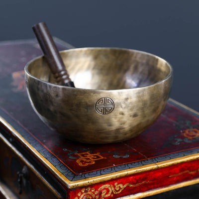 Bowl rings at a G# note when struck with a woolen mallet. This note resonates with the Throat Chakra. It influences communication, dreaming, artistic expression, good judgment, self-belief, wisdom, and truthfulness. When the Throat Chakra is balanced, it allows for free communication, helping us to feel centered and happy.