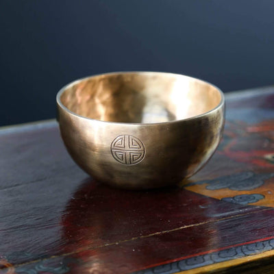 Bowl rings at a F note when struck with a woolen mallet.  This note resonates with the Heart Chakra, which is the center of real, unconditional affection, spiritual growth, compassion, devotion and love.