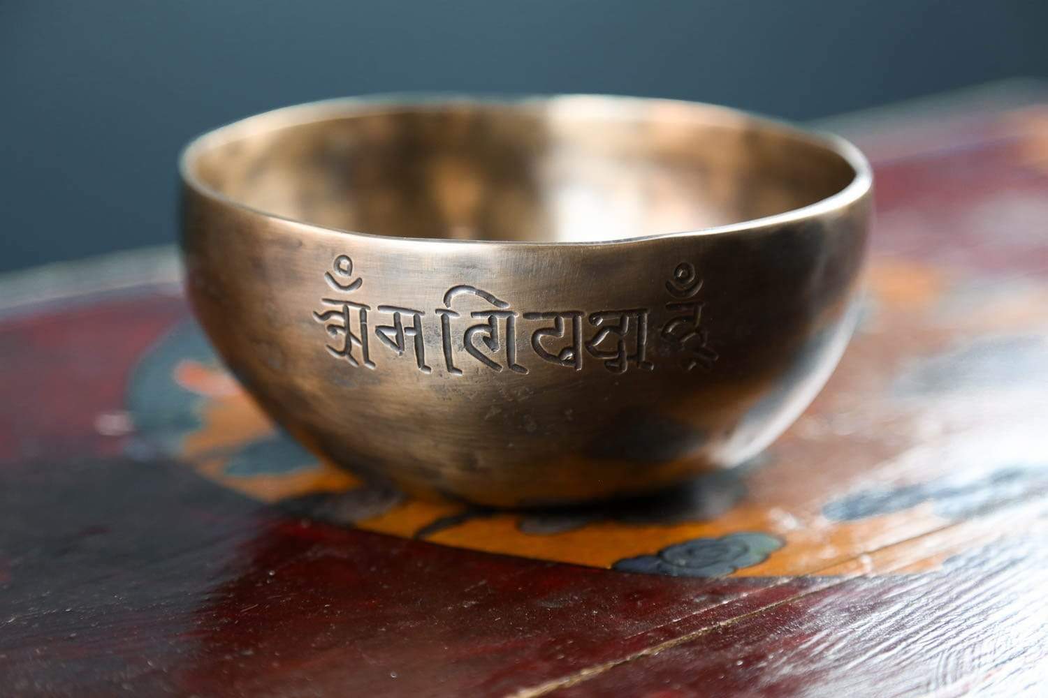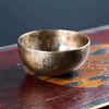 Each bowl features gorgeous hand carved details including an exclusive full moon singing bowl stamp, an original makers mark, and the mantra of compassion in Tibetan script. The mantra invokes the powerful benevolent attention and blessings of Chenrezig, the embodiment of compassion. The full moon singing bowl stamp is also known as the symbol of longevity and happiness.