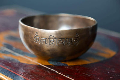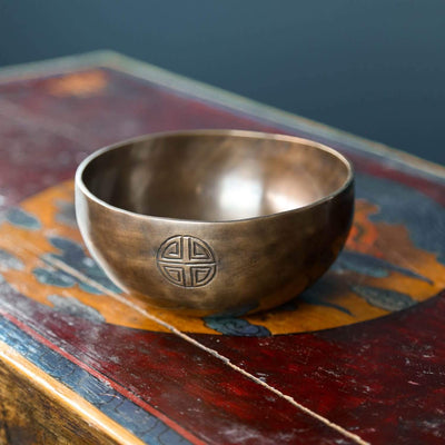 Each bowl features gorgeous hand carved details including an exclusive full moon singing bowl stamp, an original makers mark, and the mantra of compassion in Tibetan script.