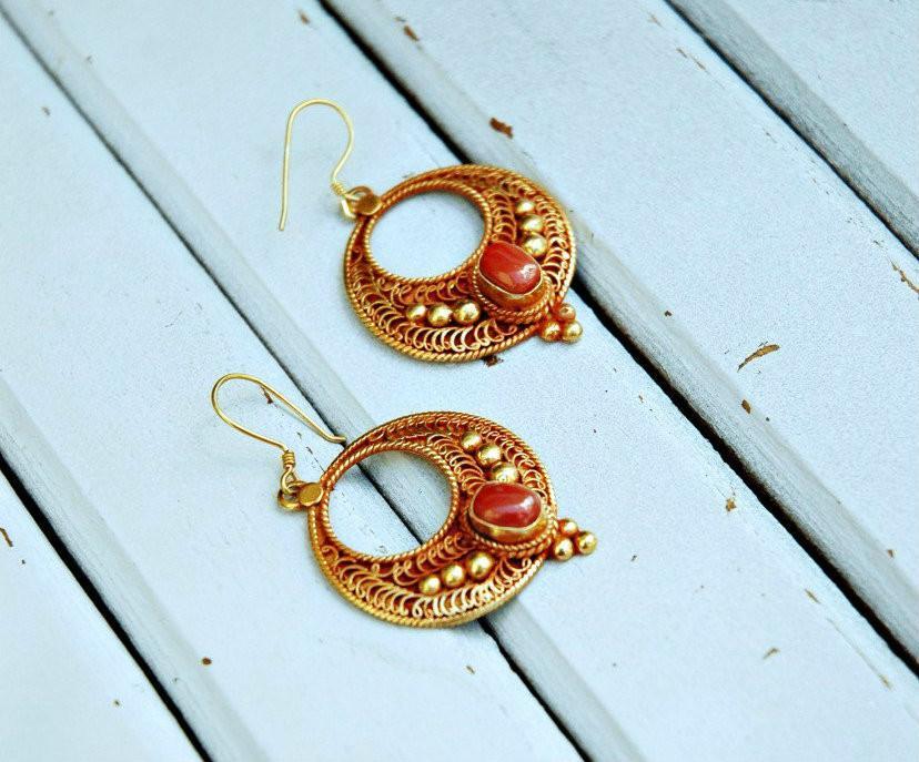 Stunning gold and coral earrings. 25 centimeters tall about 1 inch. Sterling silver gold plated in 24k gold