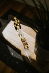 • A unique Himalayan artifact, this handcrafted Tibetan Phurba from Kathmandu features a clear Quartz Crystal dagger and Dorje with a gold-plated handle and base.