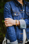 • Our bright and bold Dzi bead wrist mala looks amazing on both men and women.  Wear it alone for a simple statement or stack it with some of your favorite DharmaShop wrist malas!