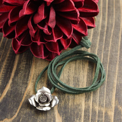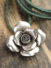 Necklace measures approximately 40 inches around and is fully adjustable - tie or knot the cord however you choose for the perfect length. The Thai silver flower pendant measures about 1 1/8 inch.