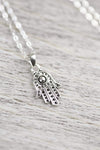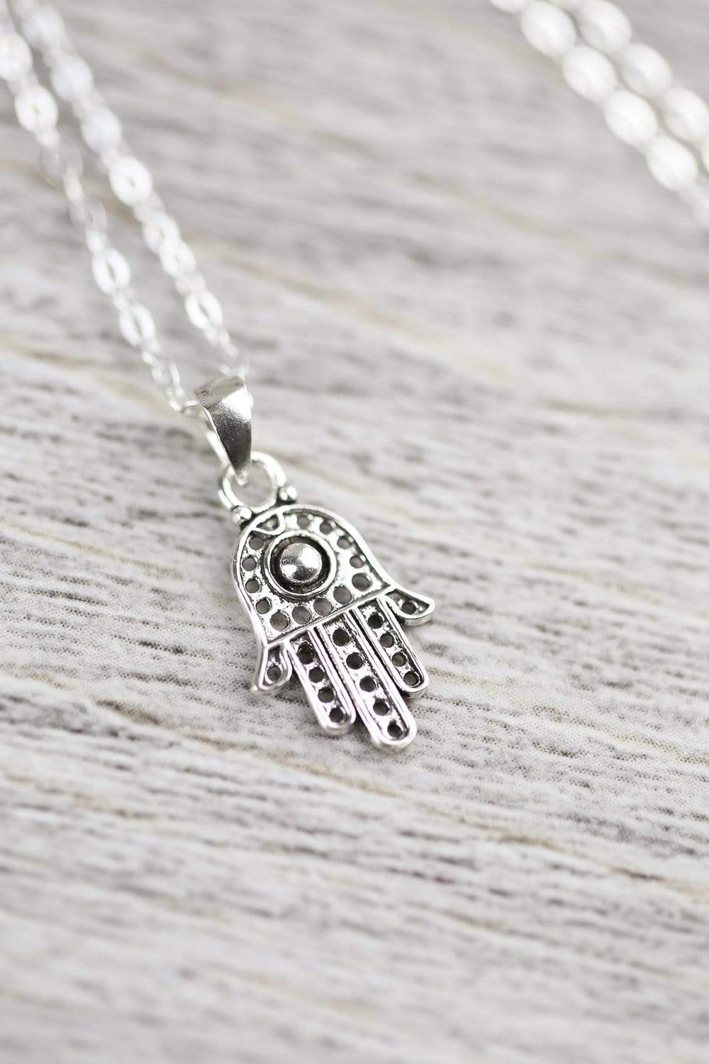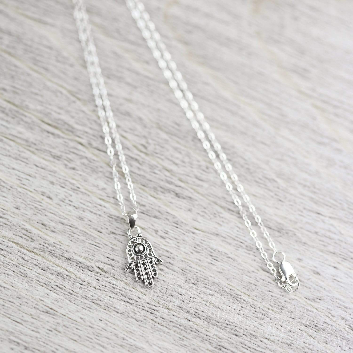 Necklace measures approximately 18 inches around. Hamsa measures about 0.8 inch tall from bale and 0.5 inch wide.