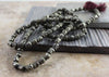 This mala measures approximately 34 inches around. Beads are approximately 8mm long and 6mm wide. Handmade in Nepal.