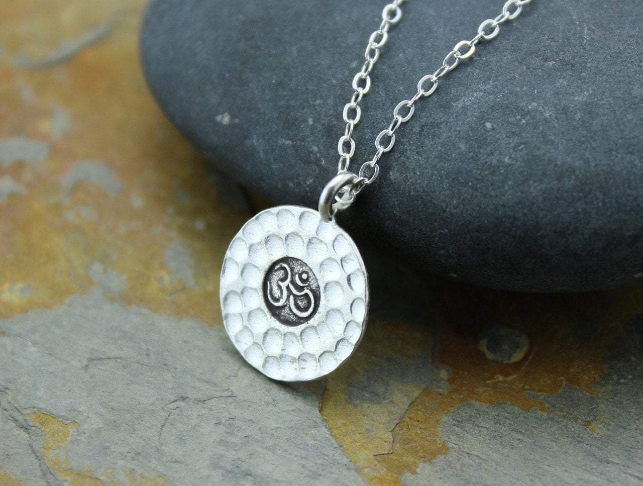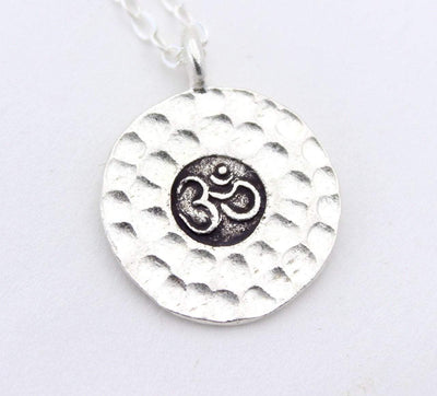 This hand hammered pendant is made entirely of solid, 98% pure, Hill Tribe silver (better than .925).  It also features a hand stamped Om design and is entirely handmade in Thailand.