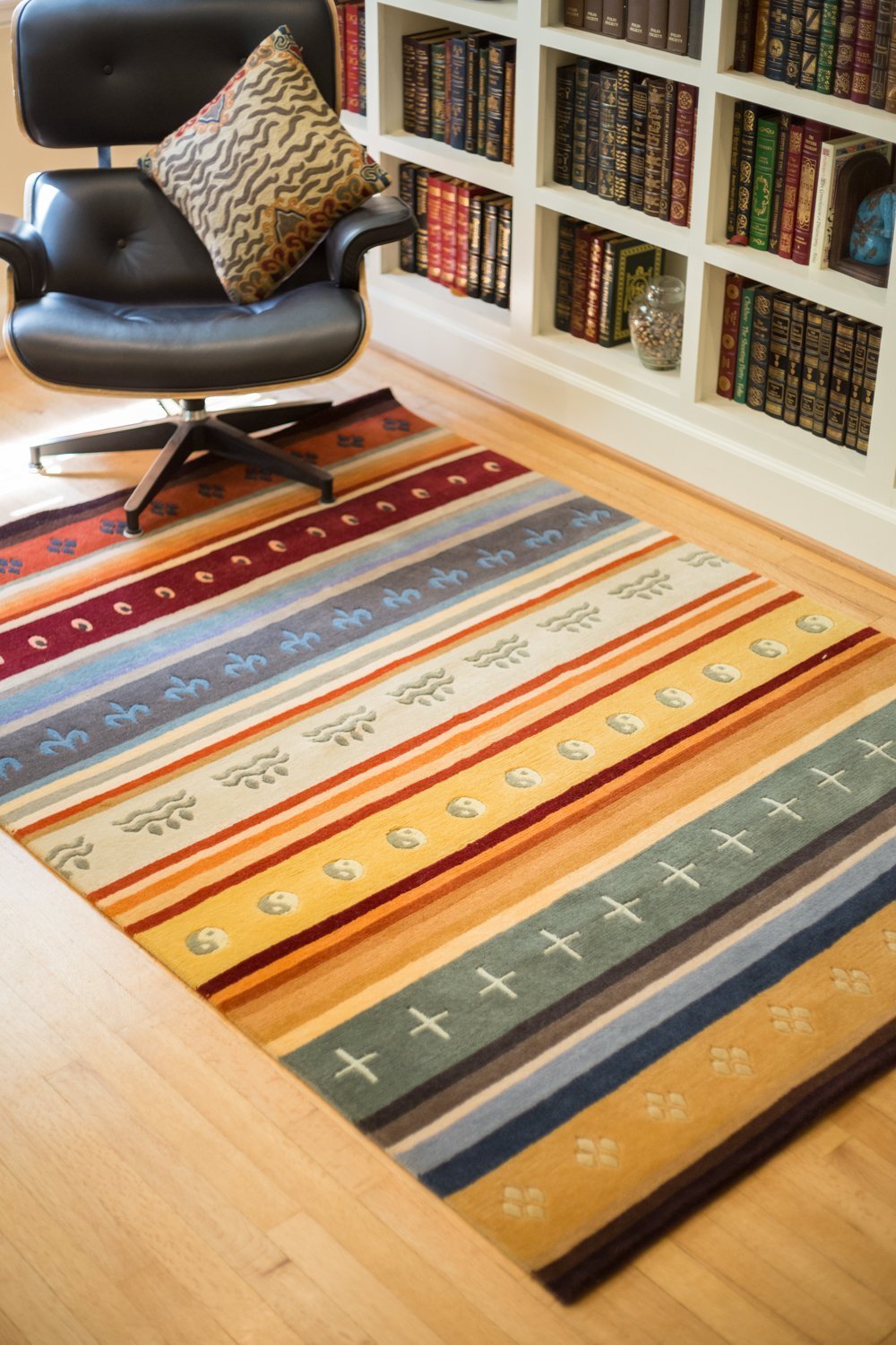 Made in the traditional manner, each design is woven by hand on looms and includes 100 knots per square inch.  All of the wool is imported from New Zealand and hand woven by well paid artists in a large open air complex in Kathmandu.  Tibetan carpets are truly beautiful pieces of art known for their quality and longevity.