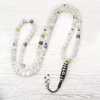 Beads are 8-9mm. Dzi measures about 1.5" long and 0.5" wide.