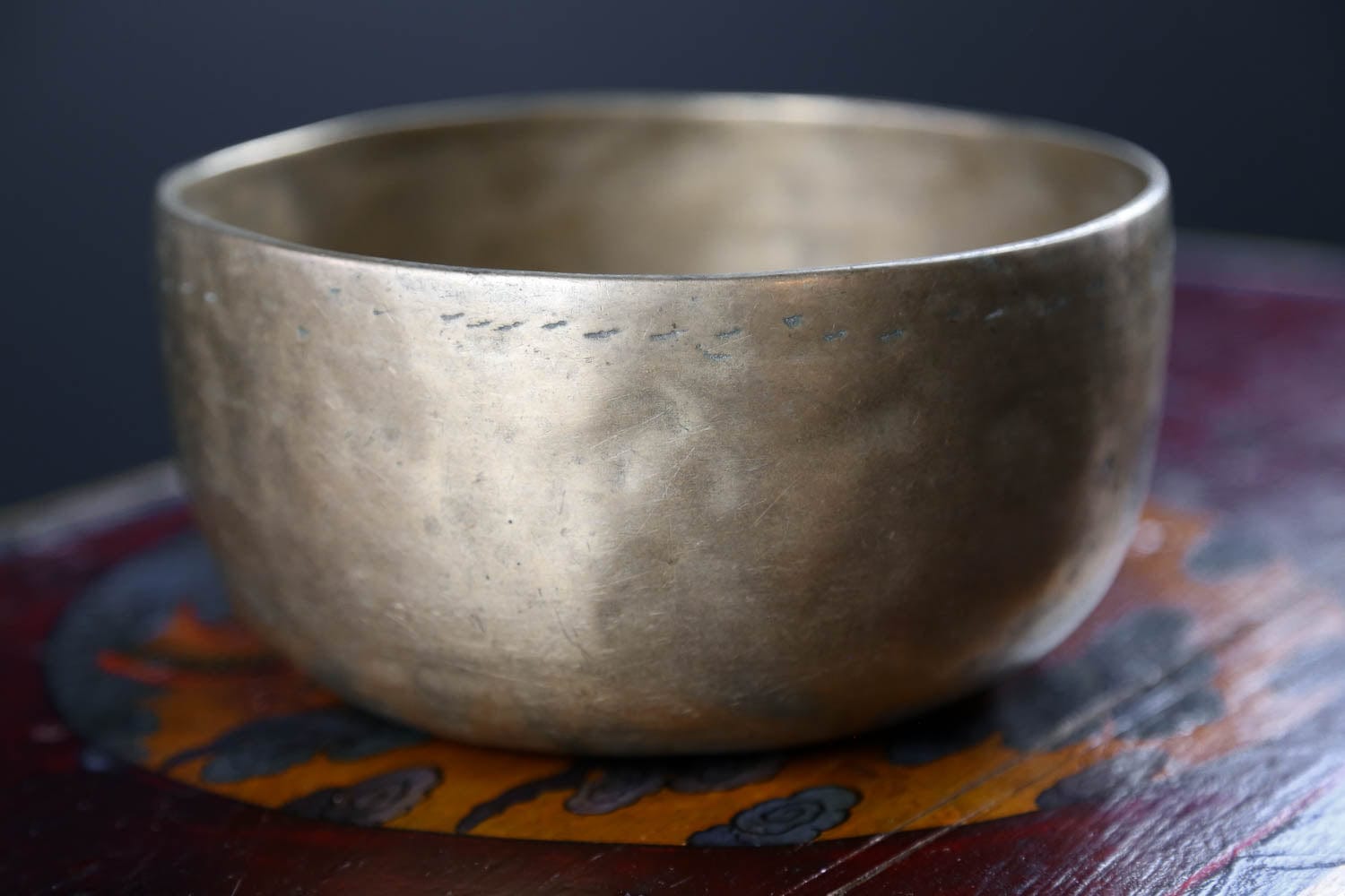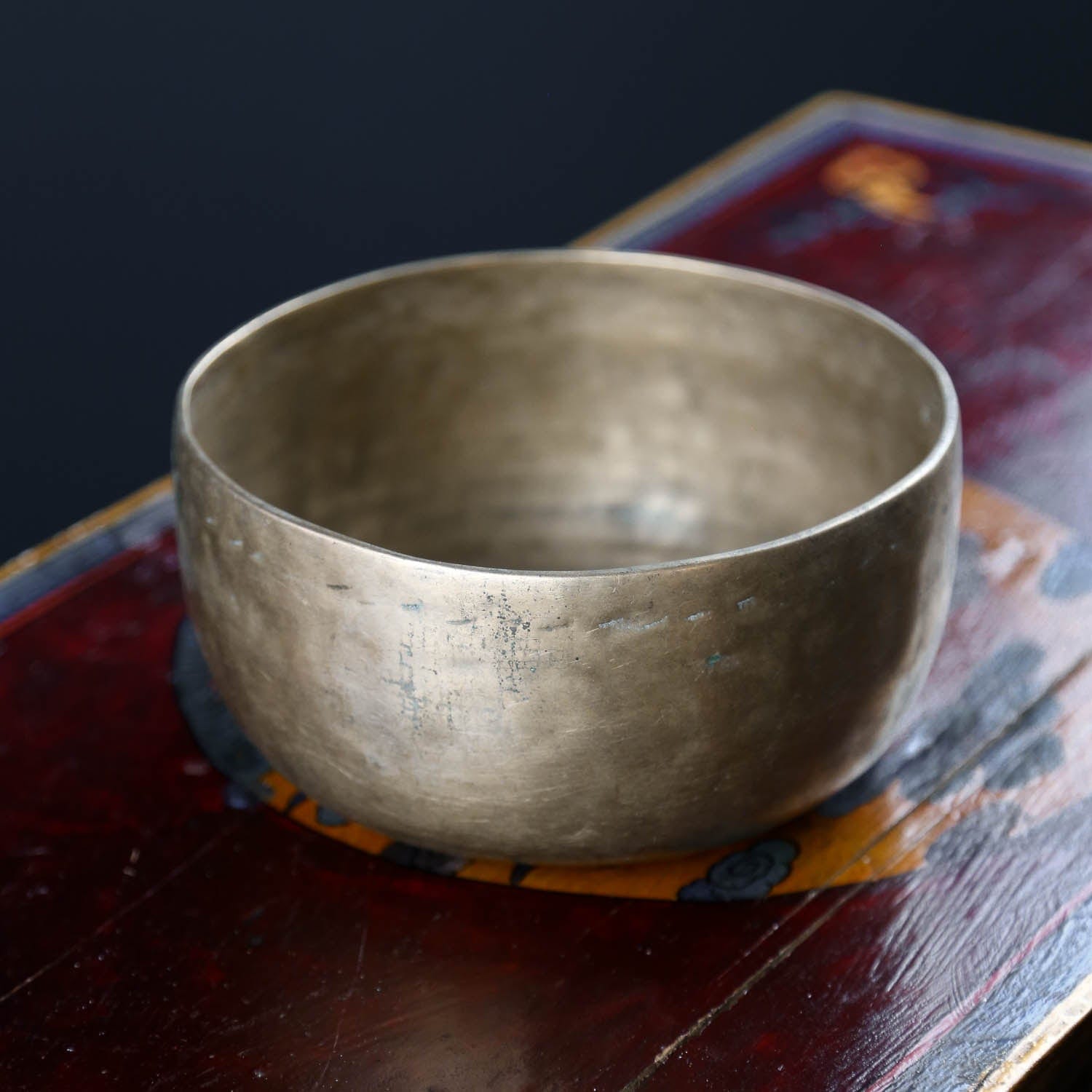 Each time we're able to get a small collection of these bowls is exciting as they are exceptional. Antique Tibetan singing bowls like this one are highly sought after for their remarkable quality sound, rich tones, and unique physical characteristics. Every handmade mark tells a story of the bowls history!
