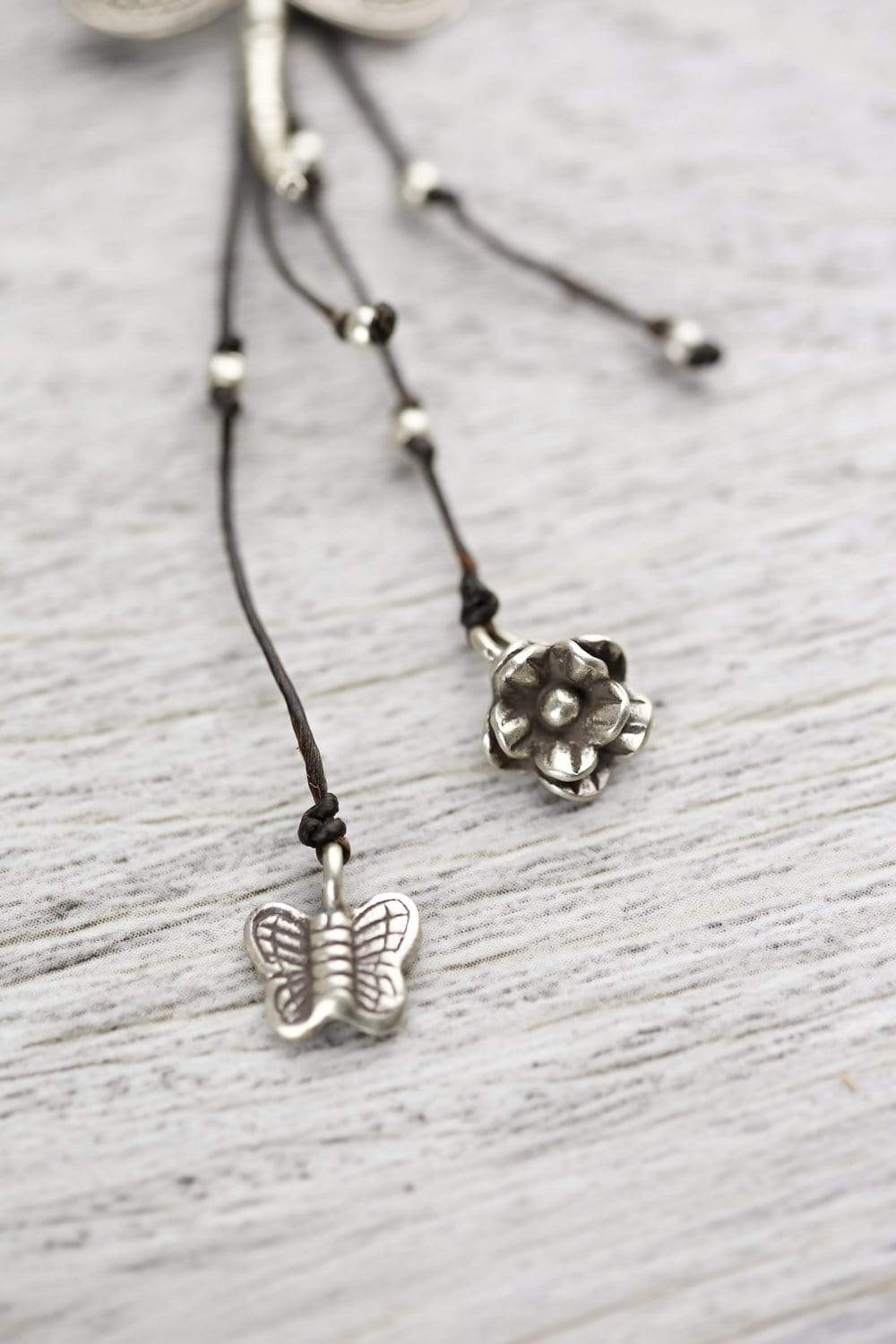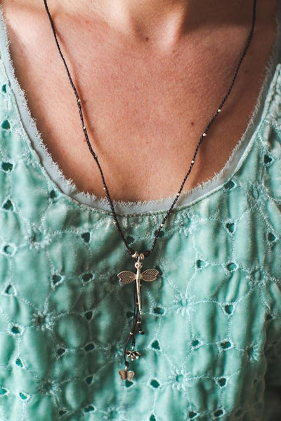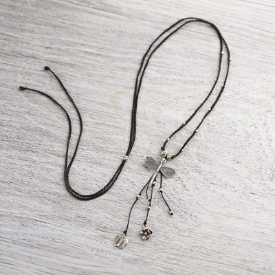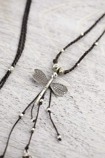 Adjustable necklace measures approximately 36 inches around in total and can be tightened to your desired length. Dragonfly is about 1.25 inch.