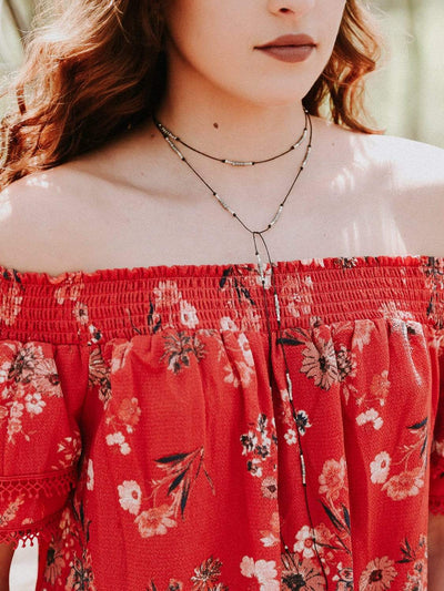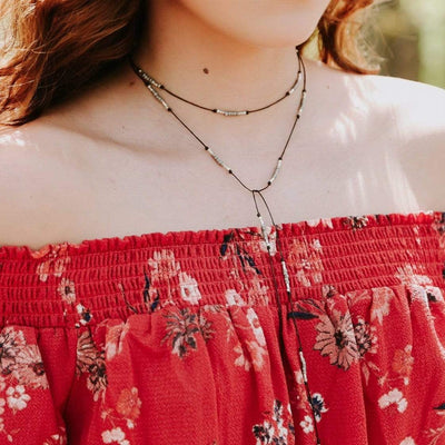• We love the style and versatility of this high end lariat necklace!  This unique piece of jewelry does not have a traditional clasp or closure allowing you to style it creatively.