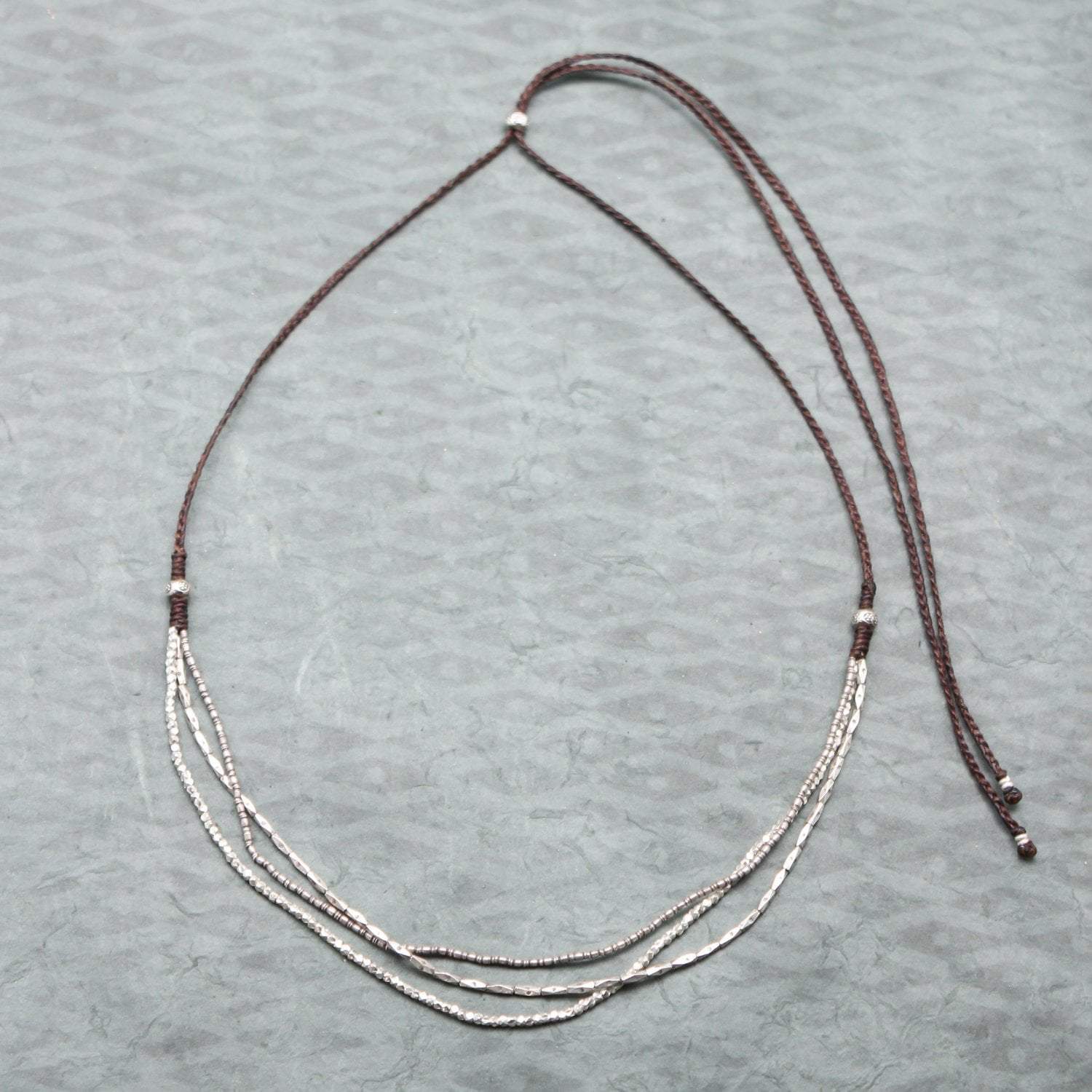 Necklace measures about 36 inches around when fully opened and can tightened to desired length.