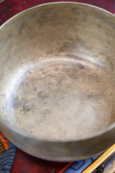 On his last trip to Nepal in 2019, Sander was able to play hundreds of antique bowls from this collection. He carefully selected only a few dozen bowls, including this one, for their high quality sound and unique physical characteristics.