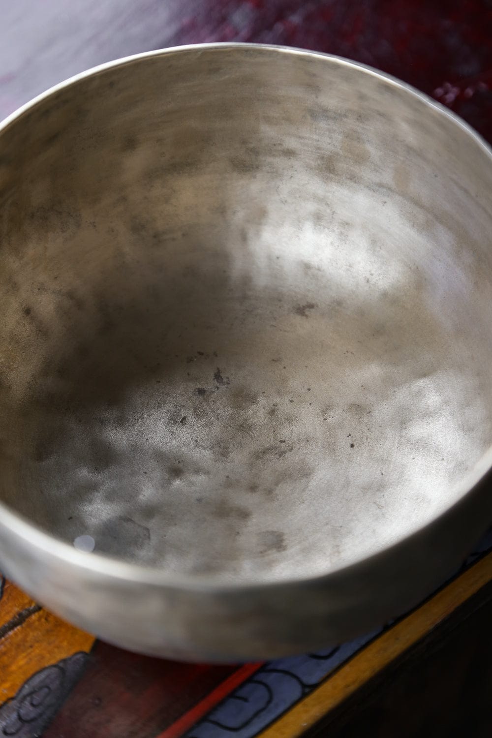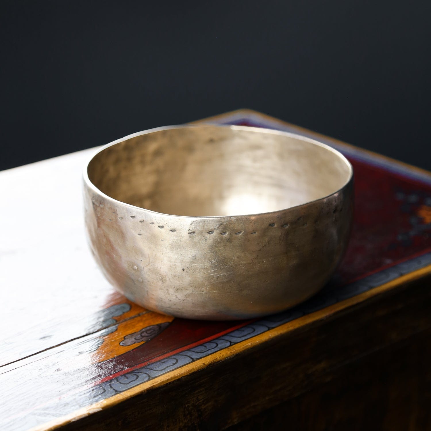 Each time we're able to get a small collection of these bowls is exciting as they are exceptional. Antique Tibetan singing bowls like this one are highly sought after for their remarkable quality sound, rich tones, and unique physical characteristics. Every handmade mark tells a story of the bowls history!