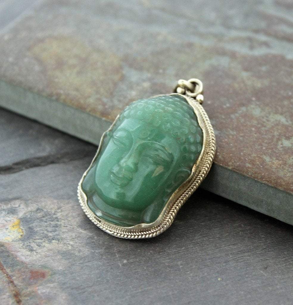 Hand carved jade Buddha set in sterling silver in Kathmandu Nepal.