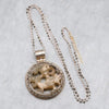 Necklace measures approximately 32 inches around. Pendant is about 3 inches tall from top of bale and 2 1/4 inches wide.