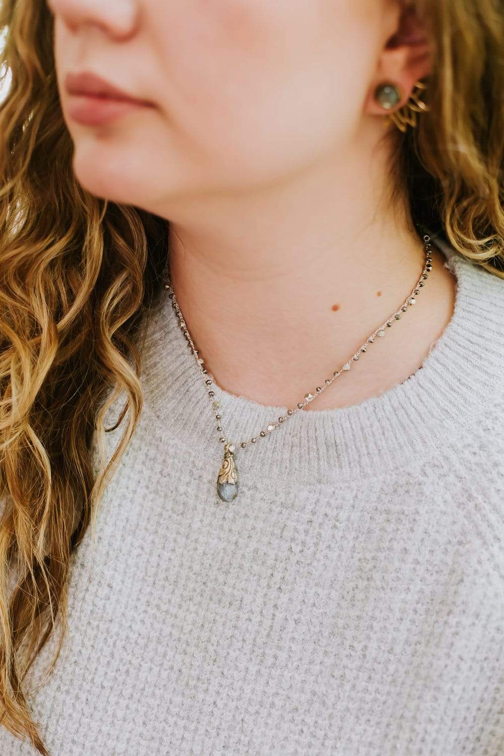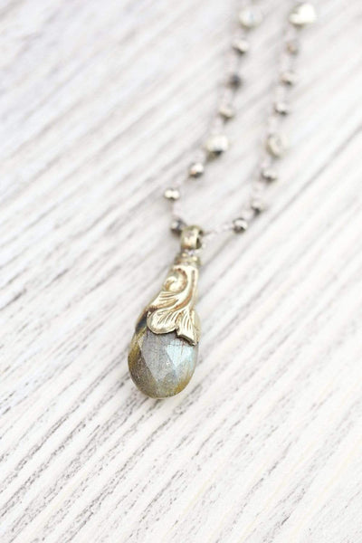 Labradorite is believed to open the wearer up to their natural intuition and creativity. Its beauty and layered color comes from the thousands of years of mineral plates sliding together, piling on top of each other to create the many lines and veins of colors deep into the stone. It is a stone of the Heart and Throat chakras.