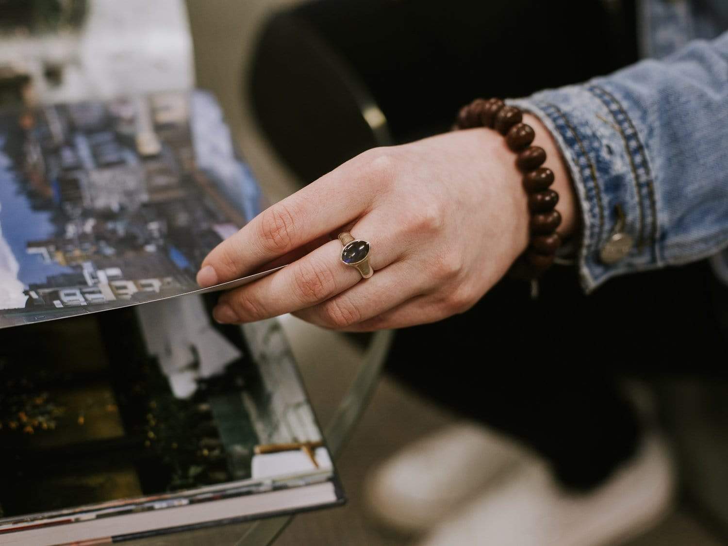 Sized ring - please choose your size. Front of ring measures just over 0.5 inch tall. *As each ring is handmade, size or style of stone may vary slightly.*