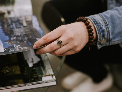Labradorite is a stone of the Throat Chakra, believed to open the wearer up to their natural intuition and creativity. Its beauty and layered color comes from the thousands of years of mineral plates sliding together, piling on top of each other to create the many lines and veins of colors deep into the stone.
