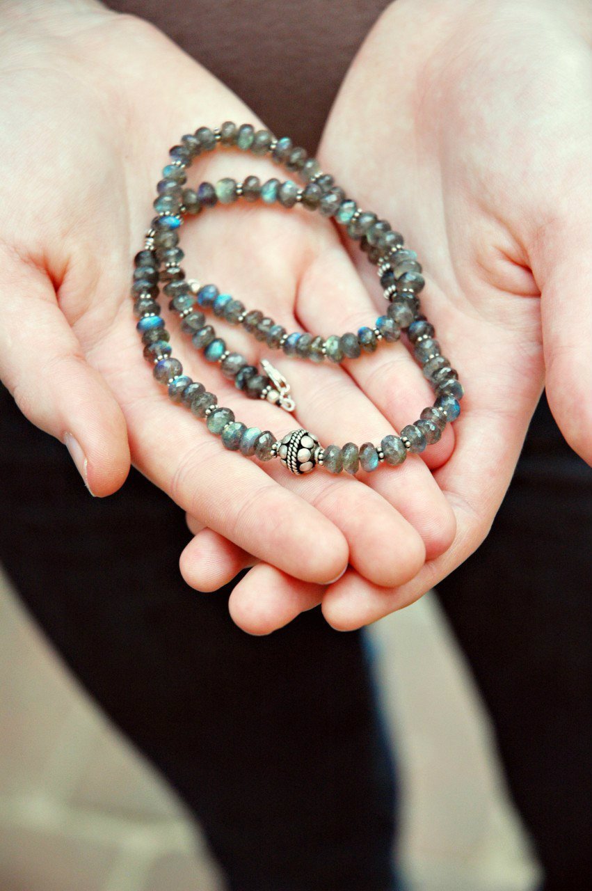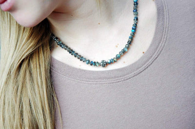 Hand made in Kathmandu Nepal. Faceted Labrodite and Sterling Silver Necklace.