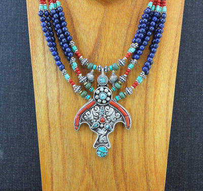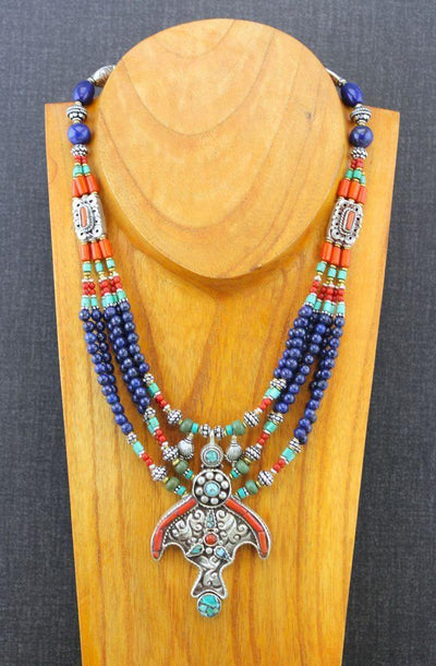 This necklace is otherworldly. I love the main focal pendant and the way the strands of beads connect to it. A stunning example of Tibetan traditional jewelry making