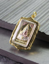 One of my favorites, we carried this years ago and I finally found a great source for them in Thailand. 2 inches tall with a gold, silver and copper Buddha in a gold plated case