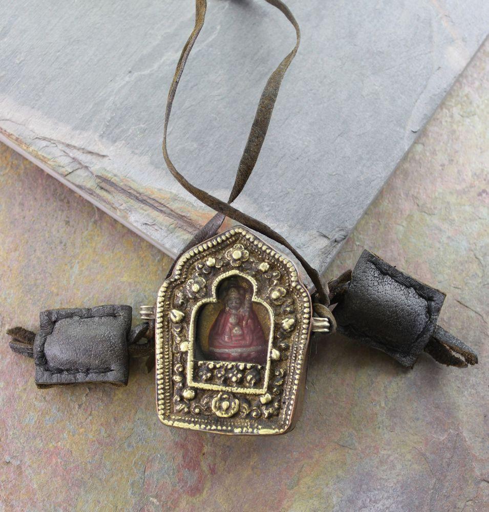 I finally found a source for these traditional Tibetan Gaus. Large lockets with a hand carved padmasambhava design and two medicine bags filled with incense. Nomads carry these large gau boxes and fill them with pictures of HH the Dalai Lama as well as prayer scarves and incense.