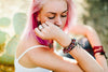Adjustable bracelet opens to about 9 inches around and closes to about 6 inches. Includes 8 18mm beads. Handmade in Nepal.