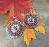Large earrings are everywhere!  Traditional Tibetan styles like these are in style everywhere now.  These classic Tibetan sterling silver plated brass earrings are inlaid with turquoise and coral.