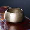 This special, museum quality Mani singing bowl features a unique shape with thick, inward sloping walls.  Mani shaped bowls are very distinct.  They tend to be heavier, more substantial bowls with thick walls and flat bottoms.  "Mani" in Tibetan means "jewel," and these bowls are known for their higher, jewel-like tone.