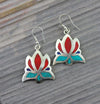 1 inch tall lightweight silver plated lotus flowers with inlaid lapis, turquoise and copal. Sterling silver french loops