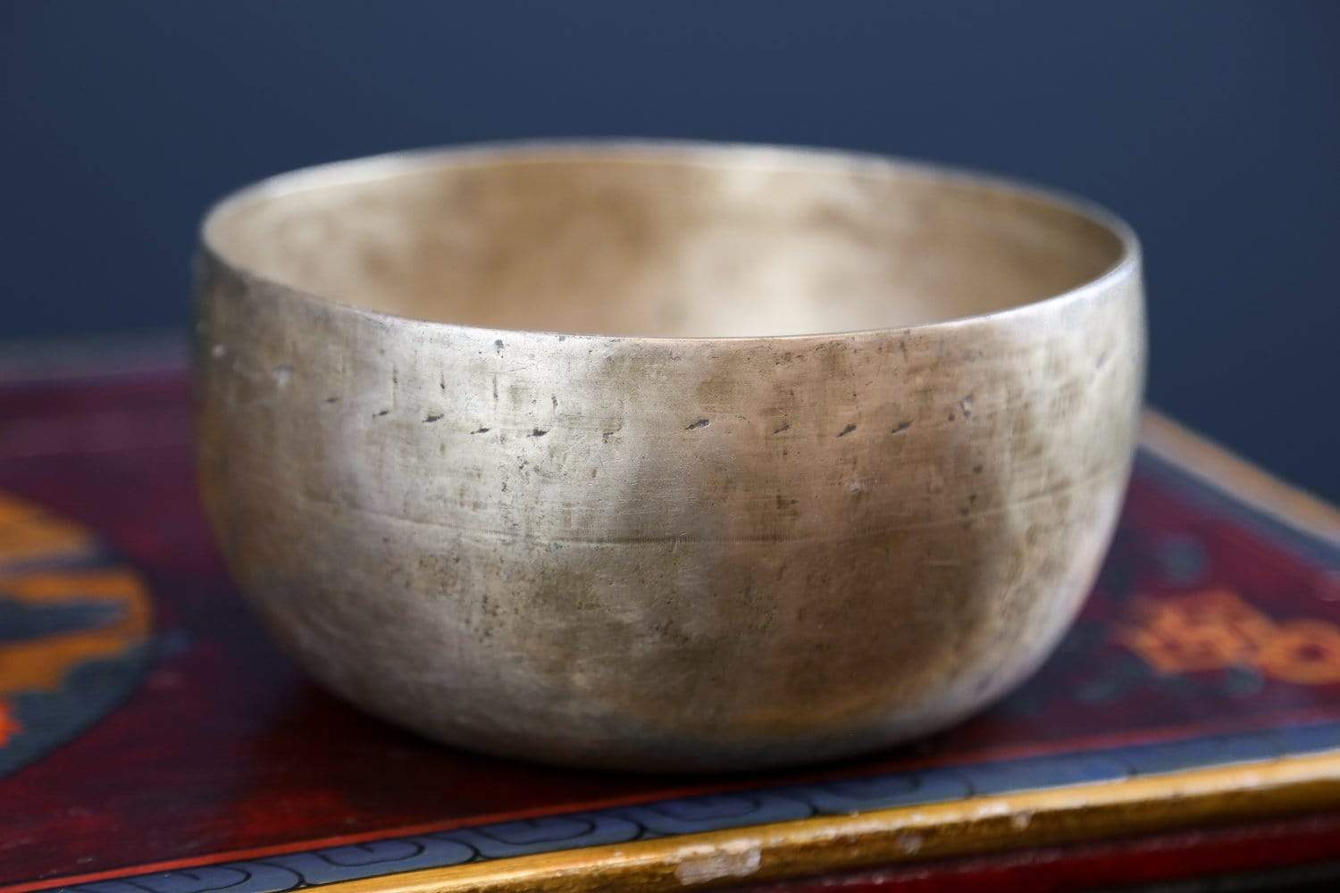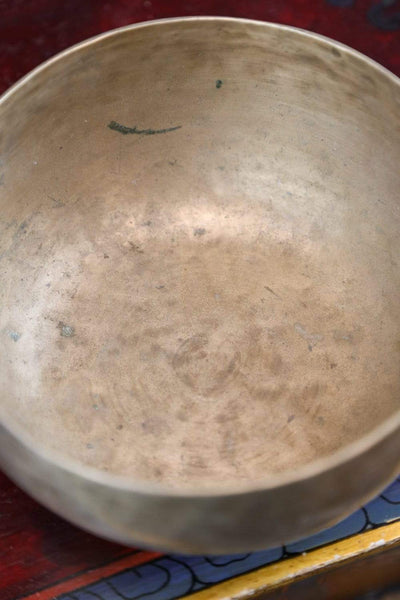 On his last trip to Nepal in 2019, Sander was able to play hundreds of antique bowls from this collection. He carefully selected only a few dozen bowls, including this one, for their high quality sound and unique physical characteristics.