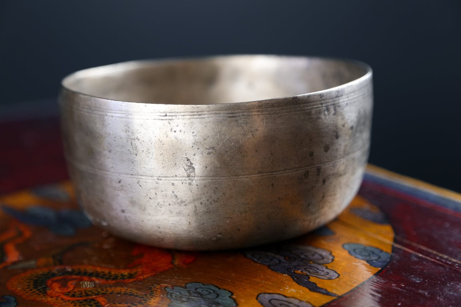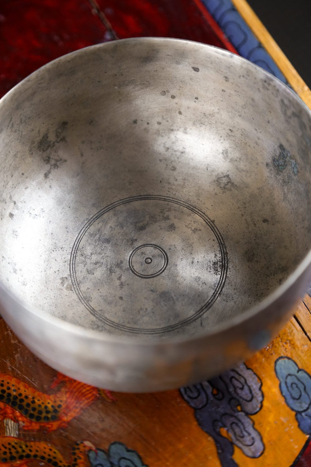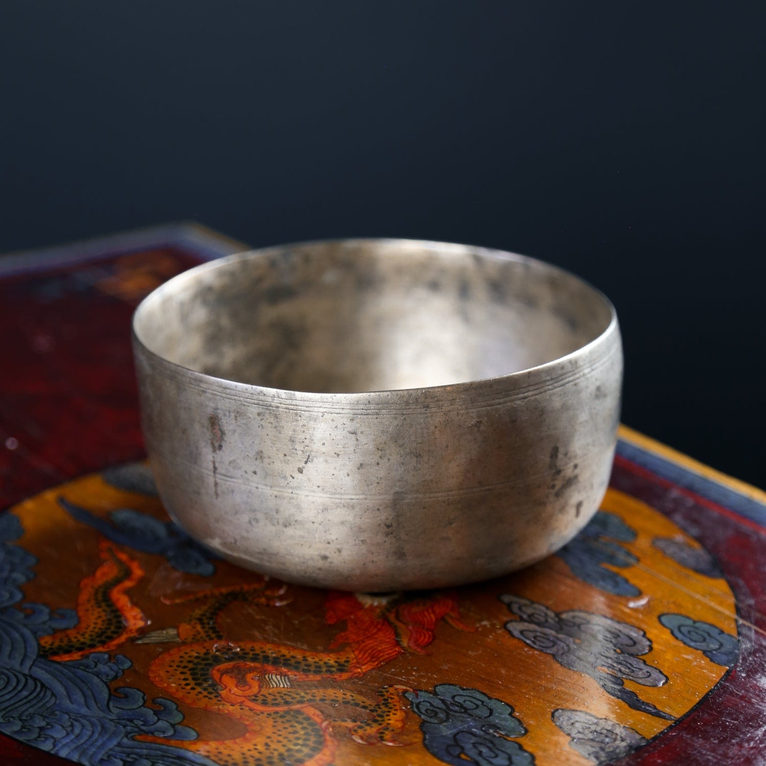Each time we're able to get a small collection of these bowls is exciting as they are exceptional. Antique Tibetan singing bowls like this one are highly sought after for their remarkable quality sound, rich tones, and unique physical characteristics. Every handmade mark tells a story of the bowls history!