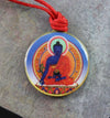 A simple 2 sided pendant with the medicine Buddha on one side and kalichakra on the other.