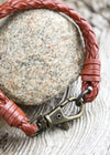 This handmade, fair-trade men's bracelet is crafted from braided bands of ethically sourced, vegetable tanned leather.  Features a sturdy and stylish lobster claw closure.  Bracelet looks great on its own or stacked with some of your favorite DharmaShop bracelets or malas.